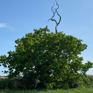 The tree both grows down, back into the source of its strength, and, also, mysteriously, magically, holds up not a reminder of lost glories or a yearning for lost youth, but a beacon. See this as the spirit calling, the tree's spirit summoning the sun.