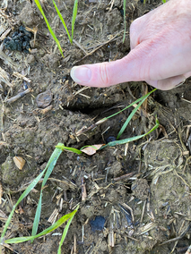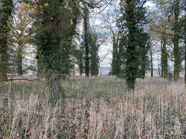 The prints crossed the field from my copse to a tiny copse in the middle of this huge expanse of baby wheat. This copse is mainly oak and there is no understory at all. I don't know why. You can still see the ridge and furrow lines - probably not in the photo. Though they have been ploughed away from the surrounding fields. So, at some point, this was ridge and furrow, then trees grew and for some reason were allowed to stay in this tiny patch. Odd.